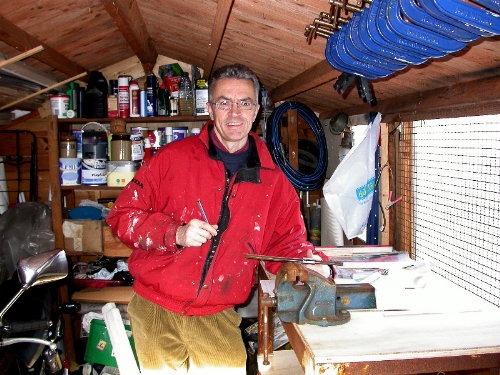 BRIEF BACKGROUND TO INVENTION In early 2007 Nigel Coole realised that the old fashioned hook & eye bra fasteners were long overdue replacement. The inspirationl moment came whilst watching one of the American high school type films, either one of the 'American Pie' series or the 'Animal House' films. Basically, one of the plots was girl loves boy, boy loves girl, but it never happens between them until the end of the film. Cue romantic scene; they are finally together, alone, and all is going well until the boy simply could not undo her bra and as a result of that the moment was lost and nothing happened! Nigel suddenly realised that that was happening around the world, everyday, and it must be possible to invent a fastener that was easy to do up and undo! As soon as he started to research the idea it was clear from the women he spoke to that not only are the old fashioned hook & eye fasteners difficult to do up and even worse to undo, but they also had many other drawbacks including damaging other clothing in the wash, and they are the most ugly component on a garment that is designed to be supportive and very importantly, beautiful. In true English fashion Nigel went out into his garden shed and made the first prototypes out of materials readily to hand. As he is not an engineer or previously involved in manufacturing, he got a strip of brass, cut out the pieces, filed them down and soldered the components together with a mini burner and plumbers solder to create the first prototypes! The picture below shows Nigel in his shed as he starts to make the very first prototype.